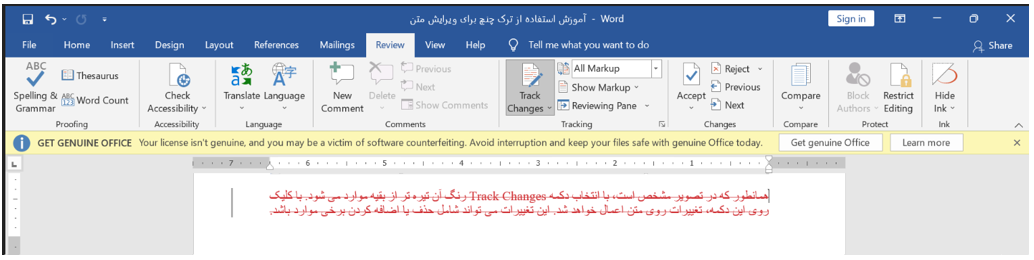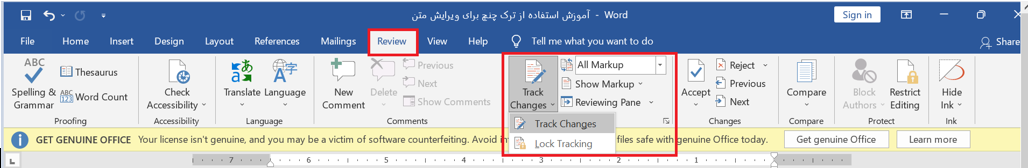 در اولین مرحله، گزینه Track Changes را از گزینه Review فعال کنید (تصویر1)